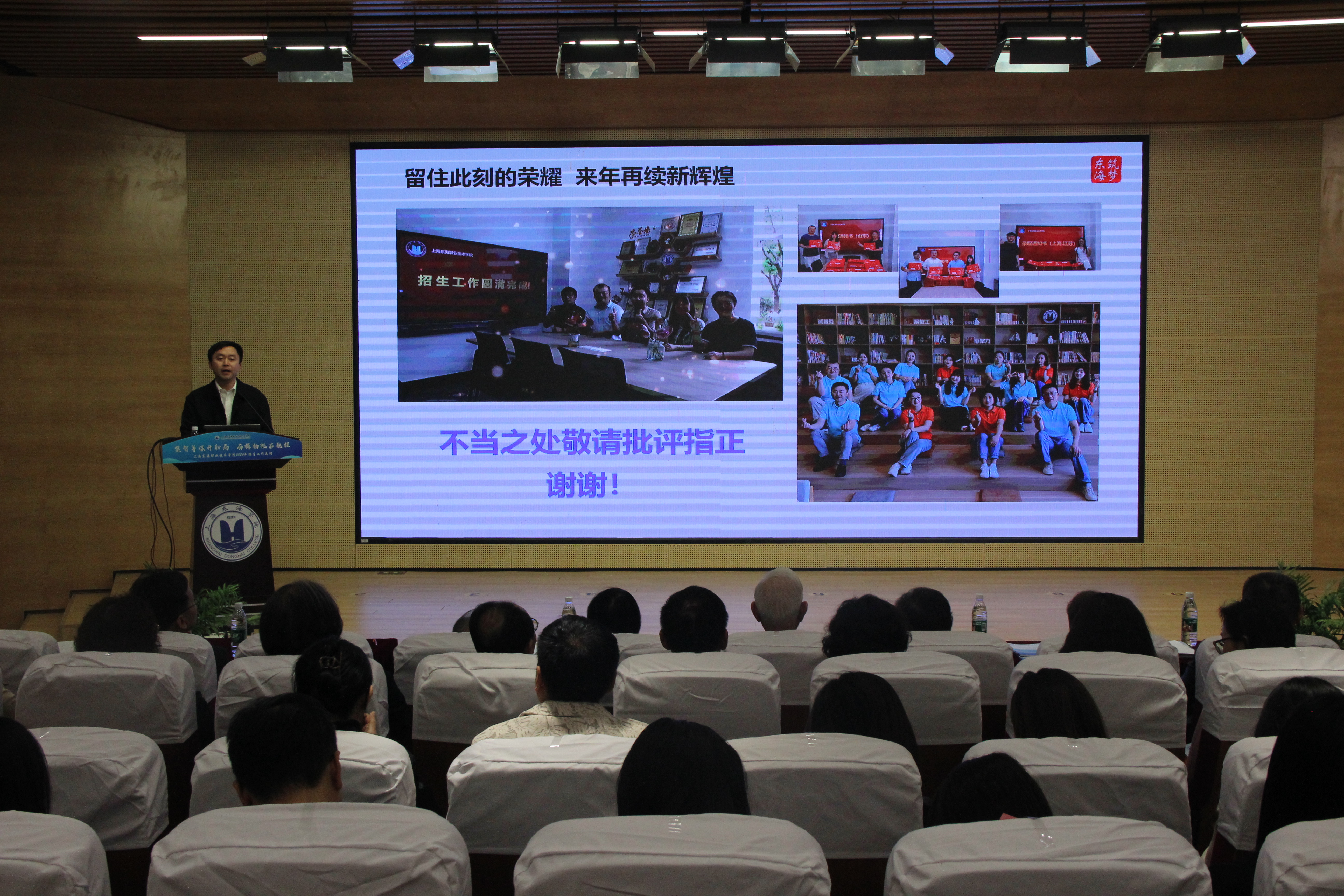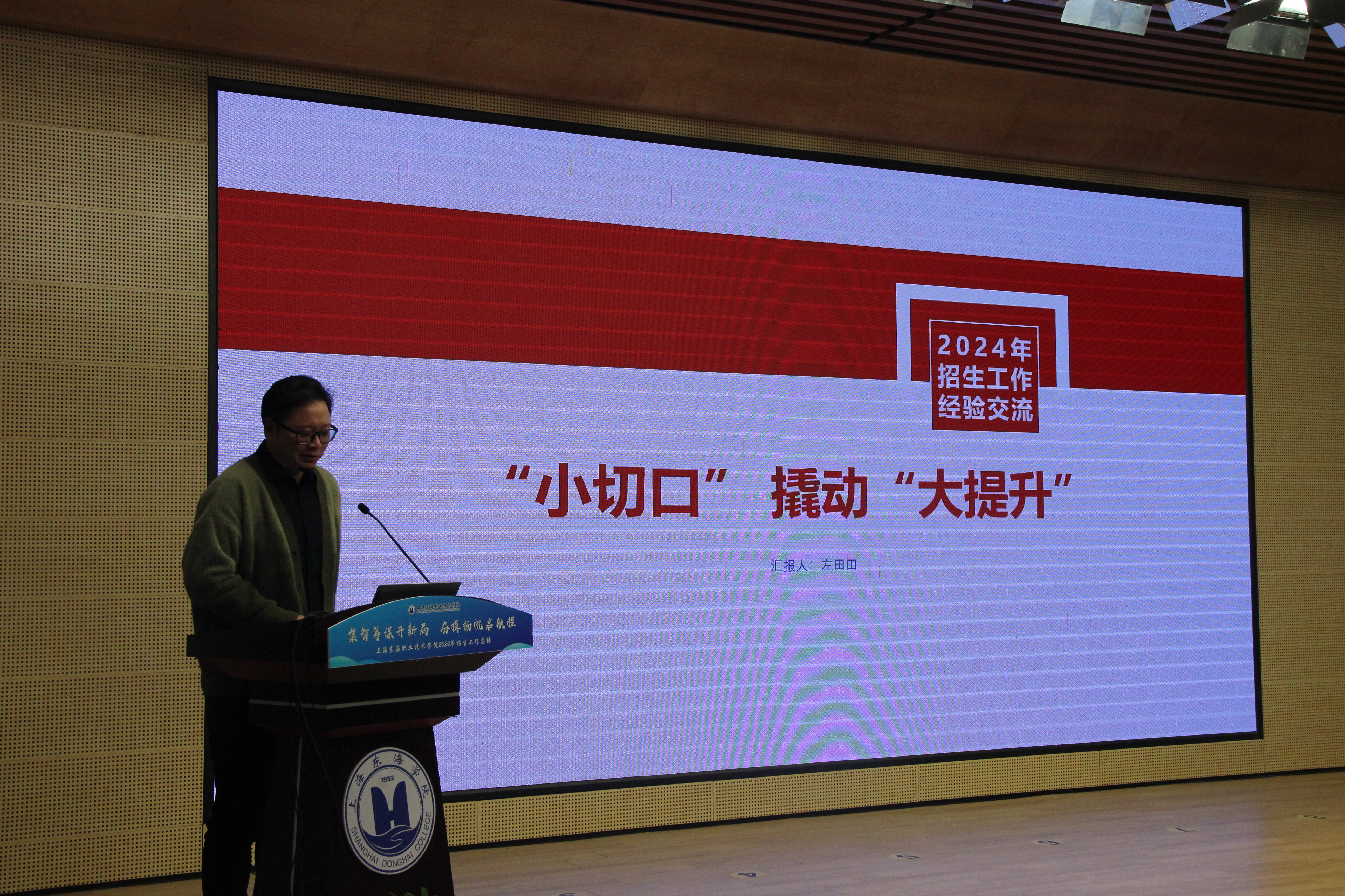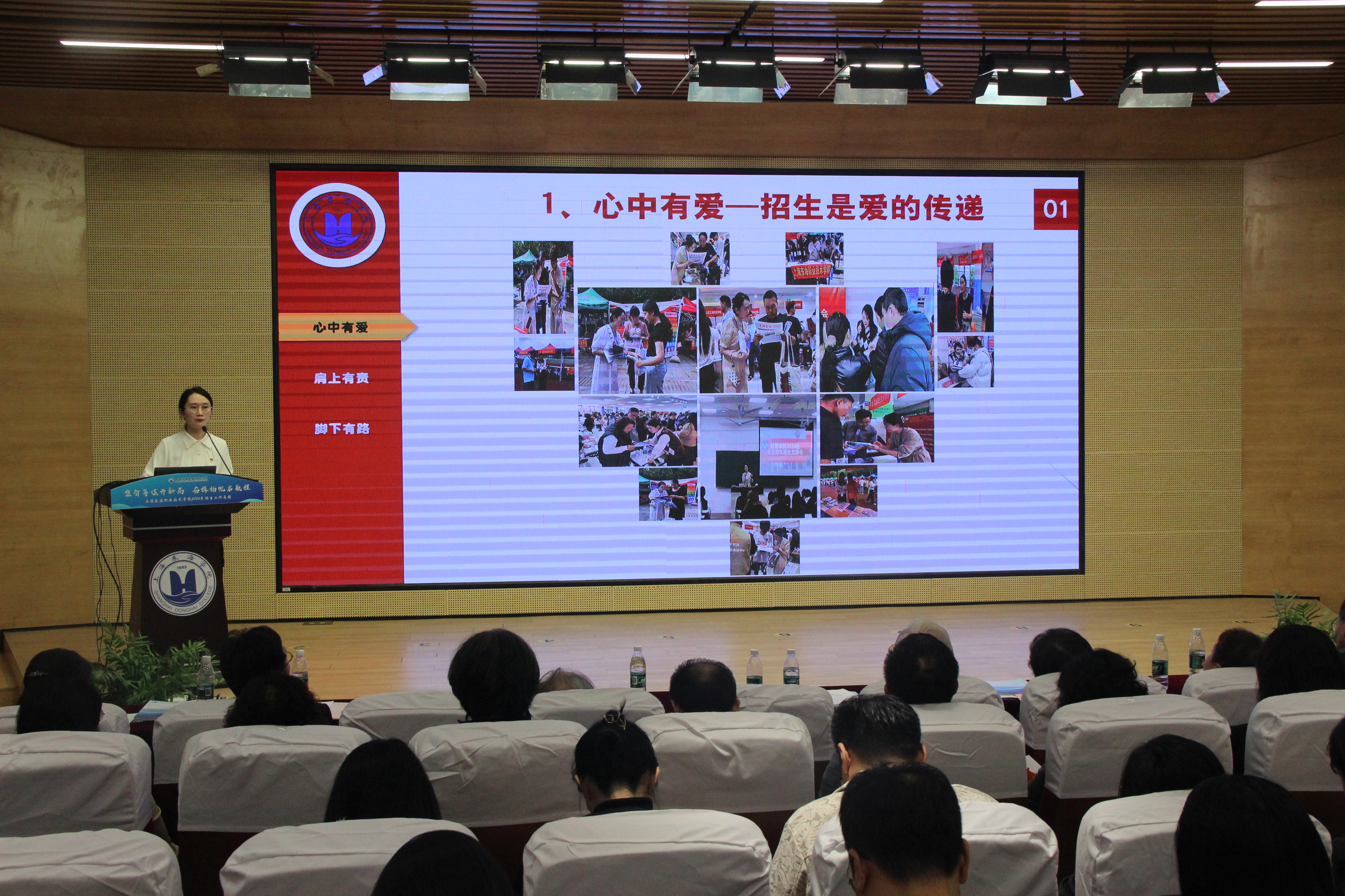招就处处长(招生办主任)蔡建平汇报了2024年招生工作基本情况,通过深入分析分类考试招生的各项数据,客观而全面地展示了本年度招生工作所面临的复杂形势,同时介绍了我校为应对这些挑战所采取的有效措施以及所取得的显著成绩。在汇报中,蔡建平代表招生管理团队向全体与会人员发出倡议:呼吁大家要客观、理性地认识当前我校招生工作所面临的机遇与挑战,强调必须紧紧围绕学校发展的中心工作和目标任务,积极参与到招生宣传工作中来。在复杂多变的环境中团结一心,共同面对困难,以真抓实干的态度,努力取得新的、更大的成绩。